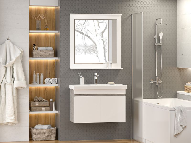 Подвесная тумба под раковину Misty Ронда 80см белый/бетон Чикаго светло-серый