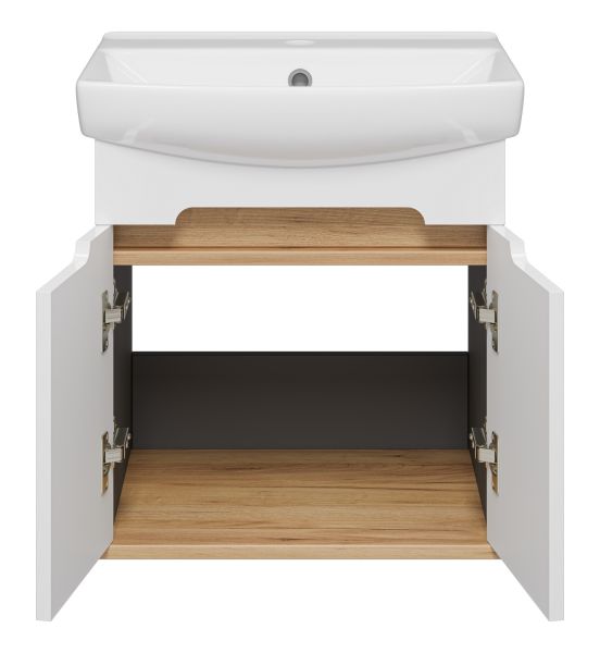 Подвесная тумба под раковину Misty Сканди 50см белый/дуб крафт золотой/антрацит
