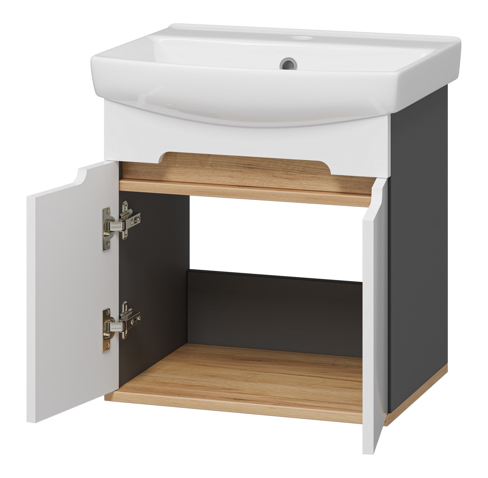 Подвесная тумба под раковину Misty Сканди 50см белый/дуб крафт золотой/антрацит купить