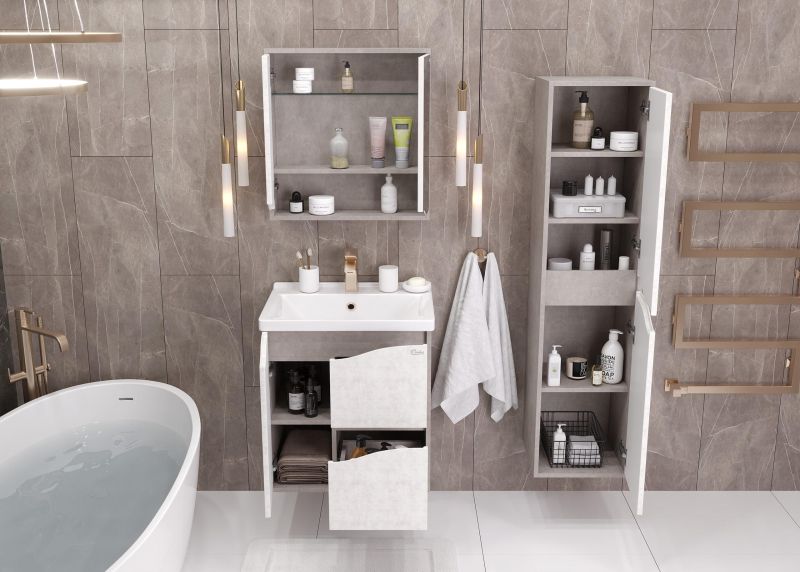 Подвесная тумба для ванной комнаты Onika Брендон 60 поможет создать особенную атмосферу ванной комнаты: текстуры камня и бетона гармонично дополняют друг-друга, создавая сдержанный выразительный акцент в интерьере.