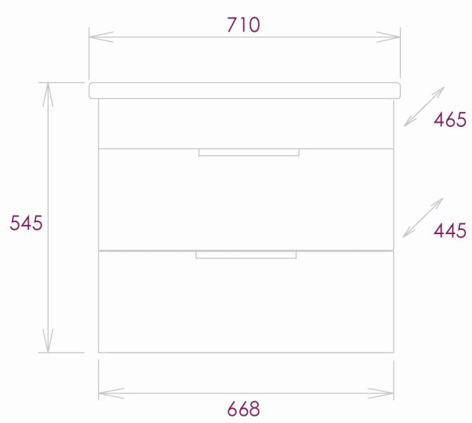 Размеры тумбы без учета раковины 67х44х50 см.