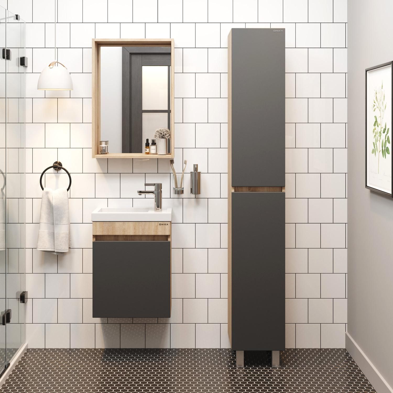 Подвесная тумба под раковину Onika Милтон 104511 45см серый/дуб сонома купить
