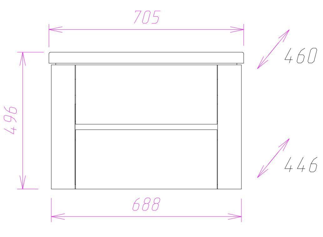 Размеры тумбы без учета раковины 69x45x44 cм.