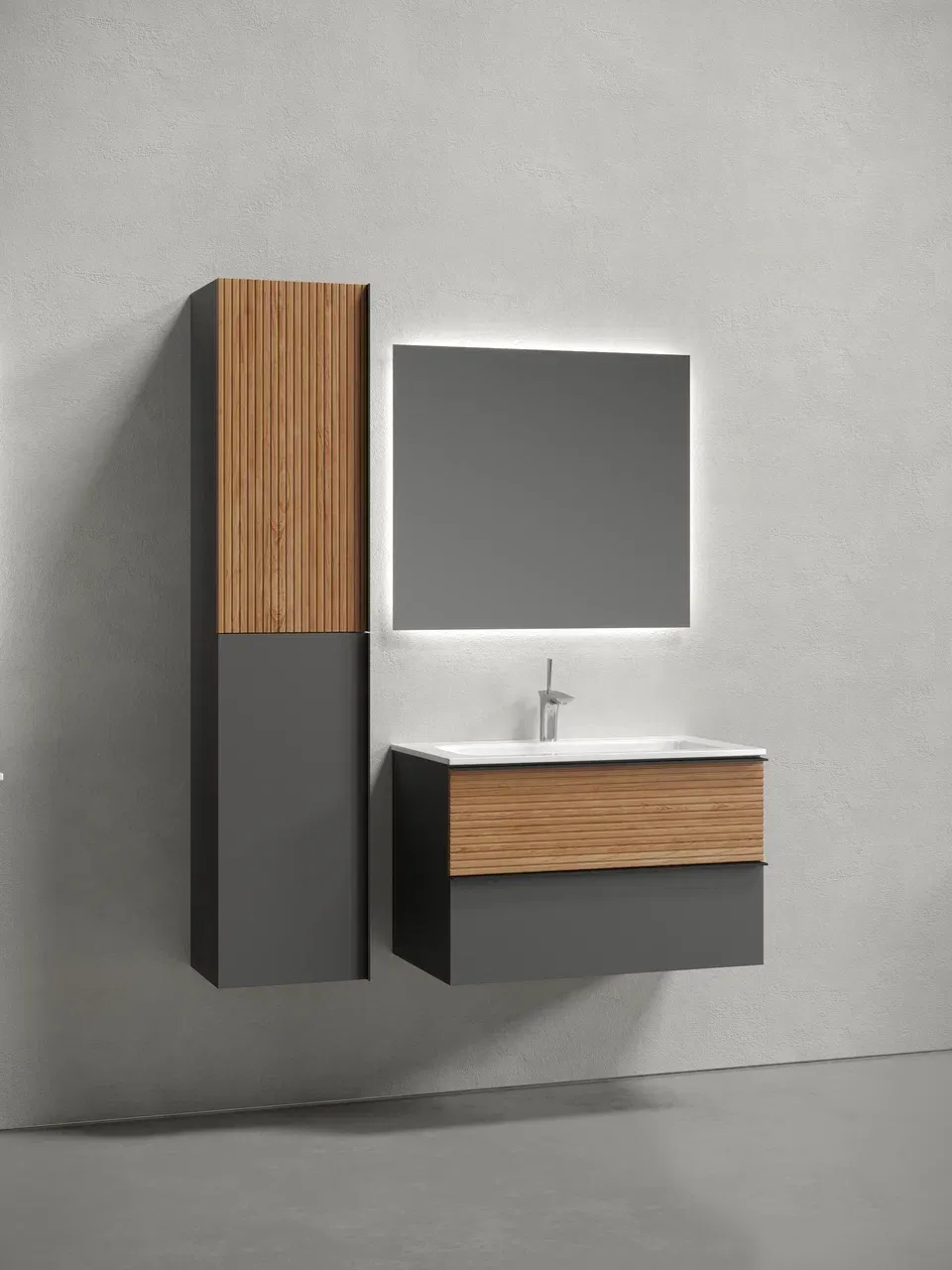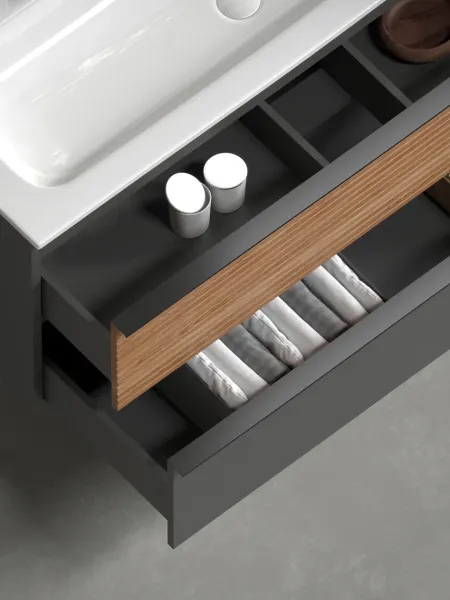 Подвесная тумба под раковину Sancos Delta DL80GR 80см дуб красный/графит