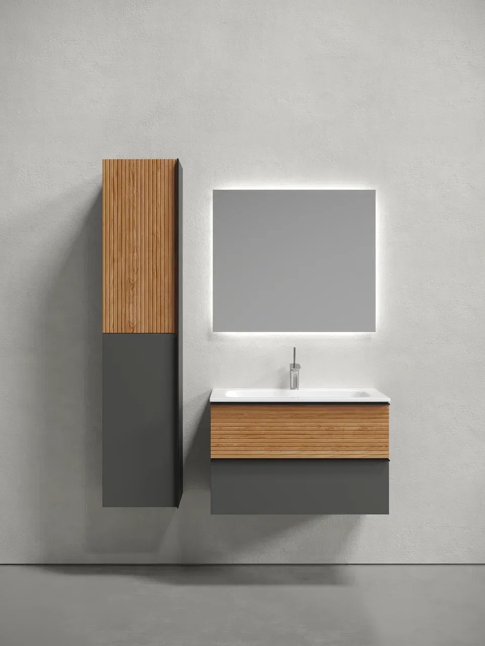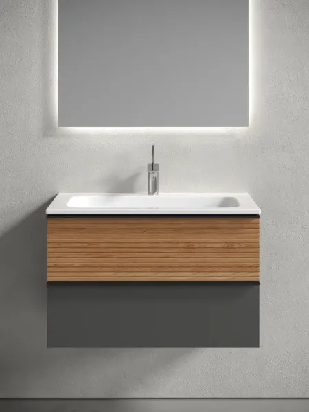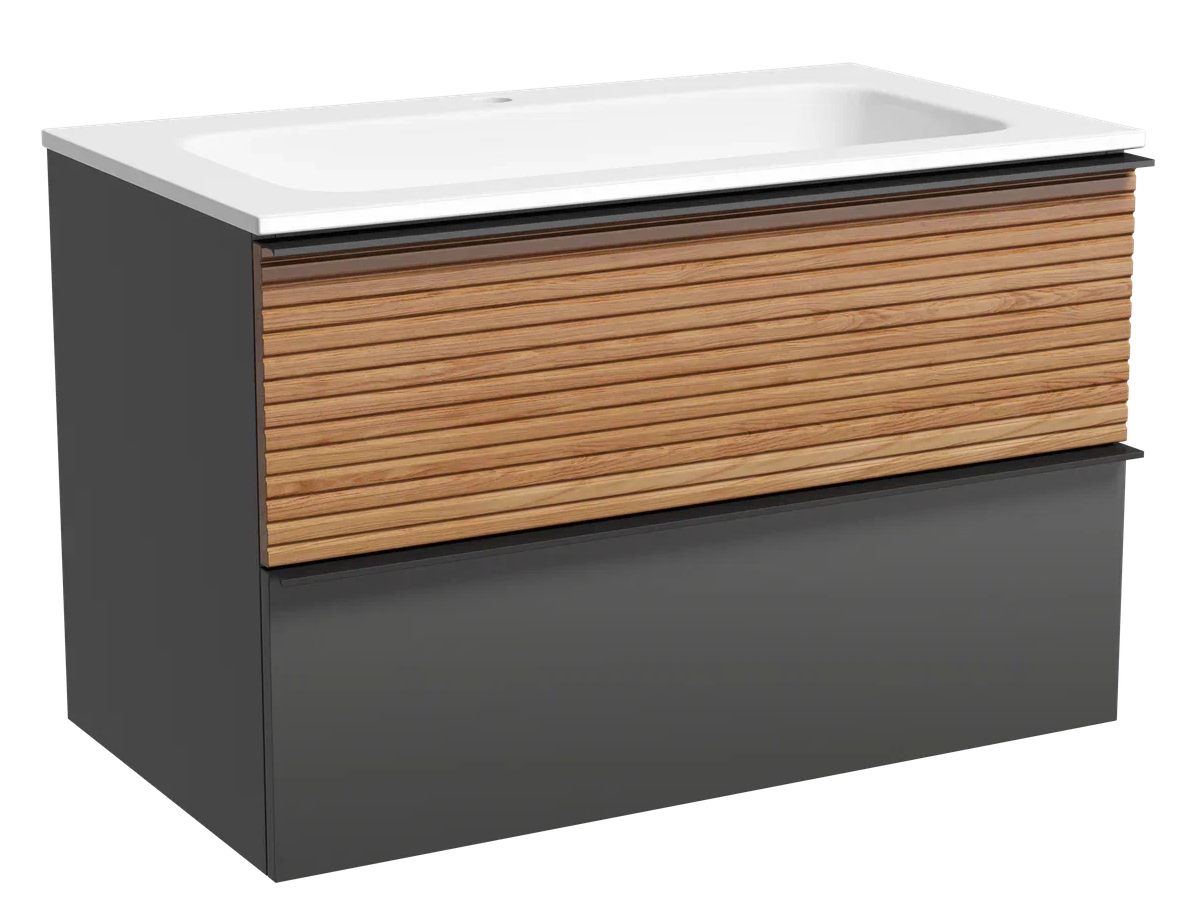 Подвесная тумба под раковину Sancos Delta DL80GR 80см дуб красный/графит купить