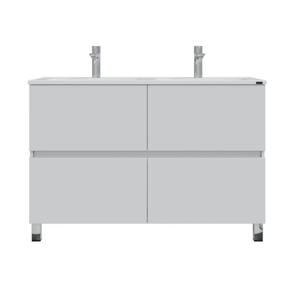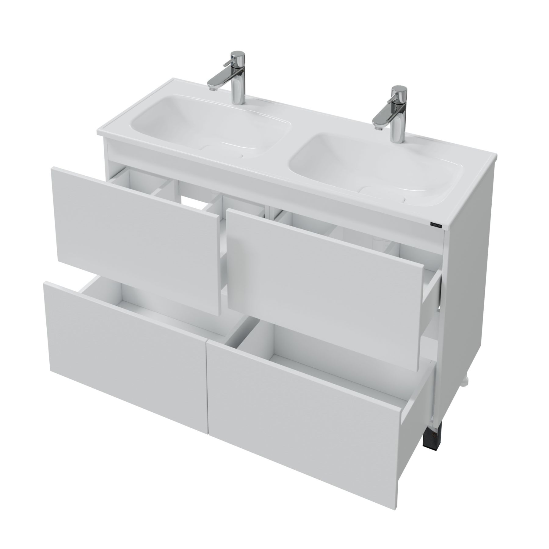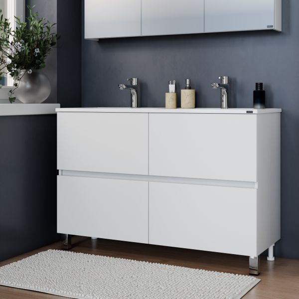Комплектация: ножка хром - 2 шт., ножка пластик 2 шт., петли с плавным закрыванием - 1 шт., направляющие с доводчиком - 2 шт Напольная тумба Санта Марс 120 под раковину Венера 120 с двойной чашей — это не только стильный, но и функциональный элемент для вашей ванной комнаты. Изготовленная из высококачественного ЛДСП, она прослужит долго, не теряя своей привлекательности. Фасады тумбы покрыты глянцевой эмалью, что придает им свежий и современный вид. Два ящика, снабженные доводчиками, обеспечат комфортное использование и удобное хранение.