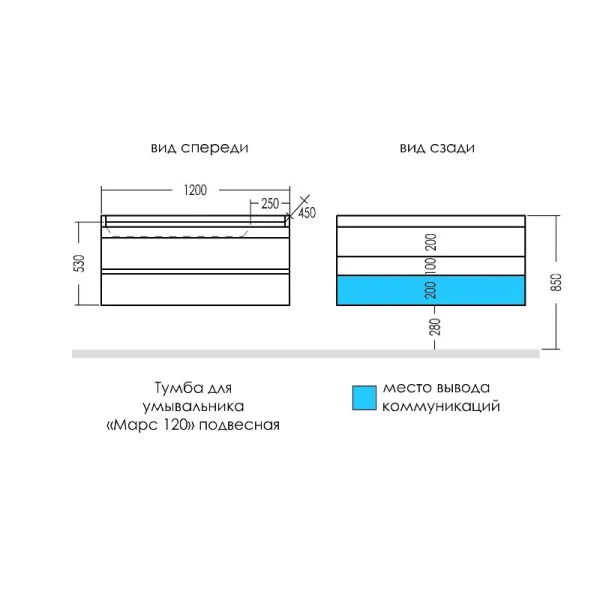 Подвесная тумба Санта Марс 120 светлая под раковину Sirius 120 с двумя ящиками - это не только с... Подробнее
