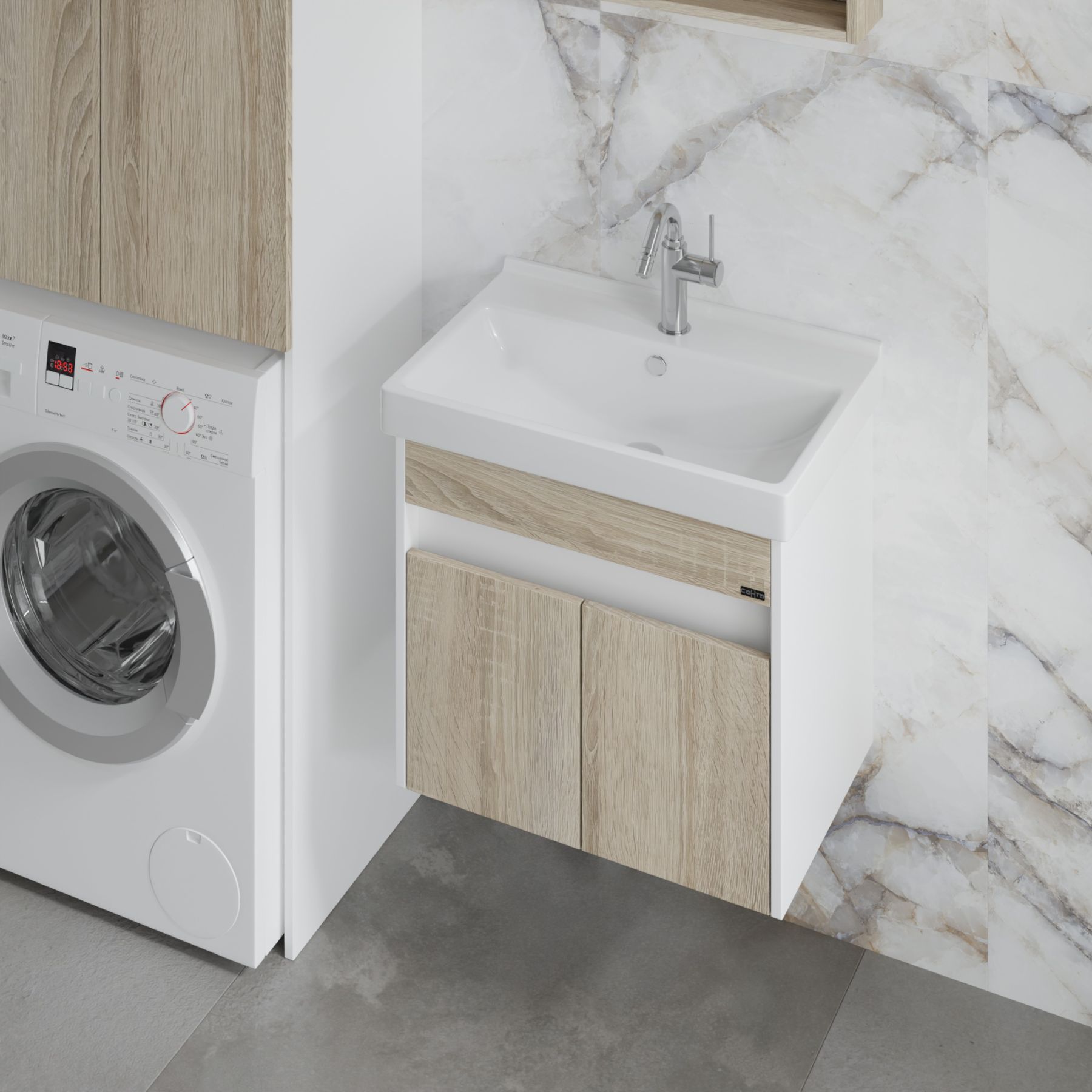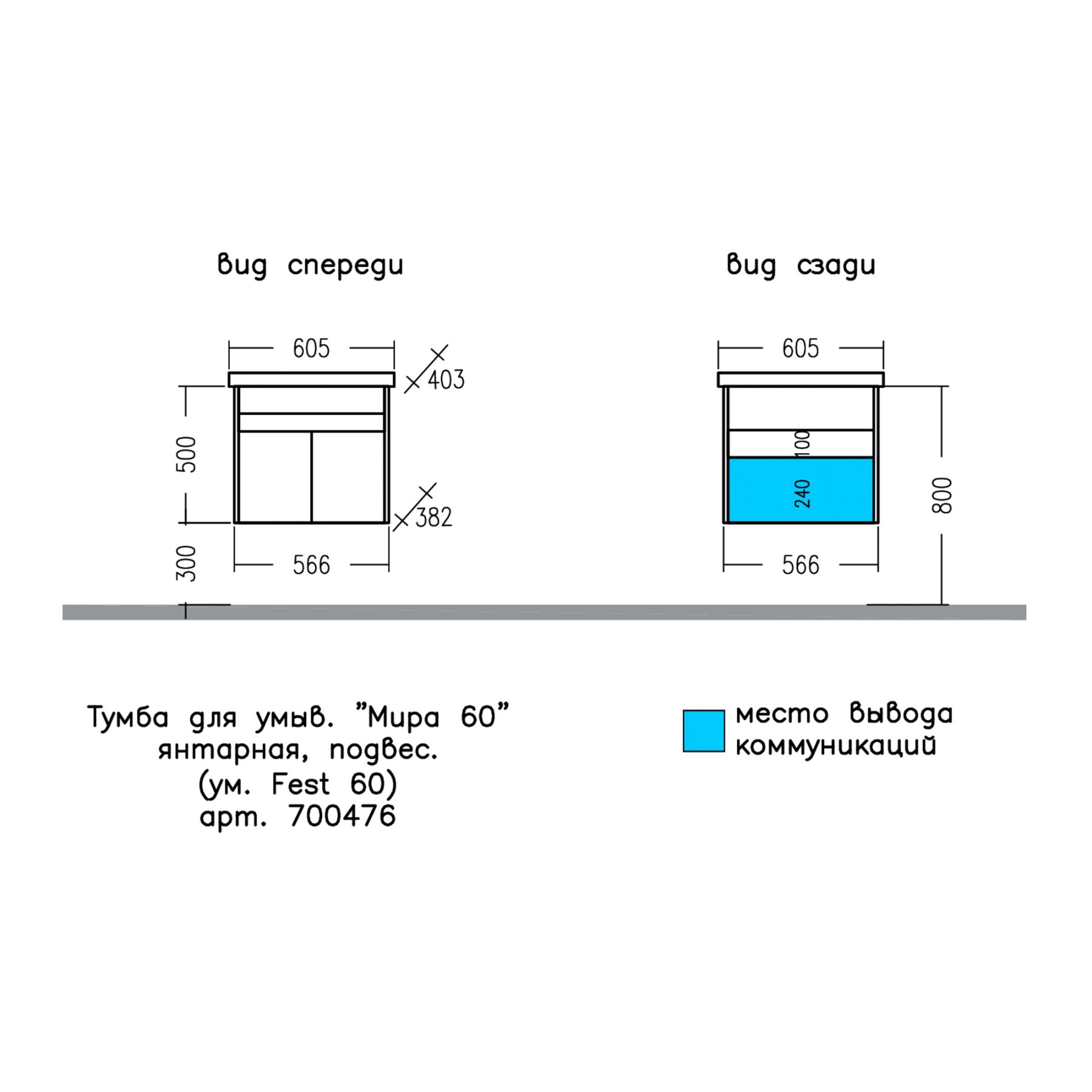 Тумба Мира 60 изготовлена под фаянсовый умывальник Sanita Fest 60.