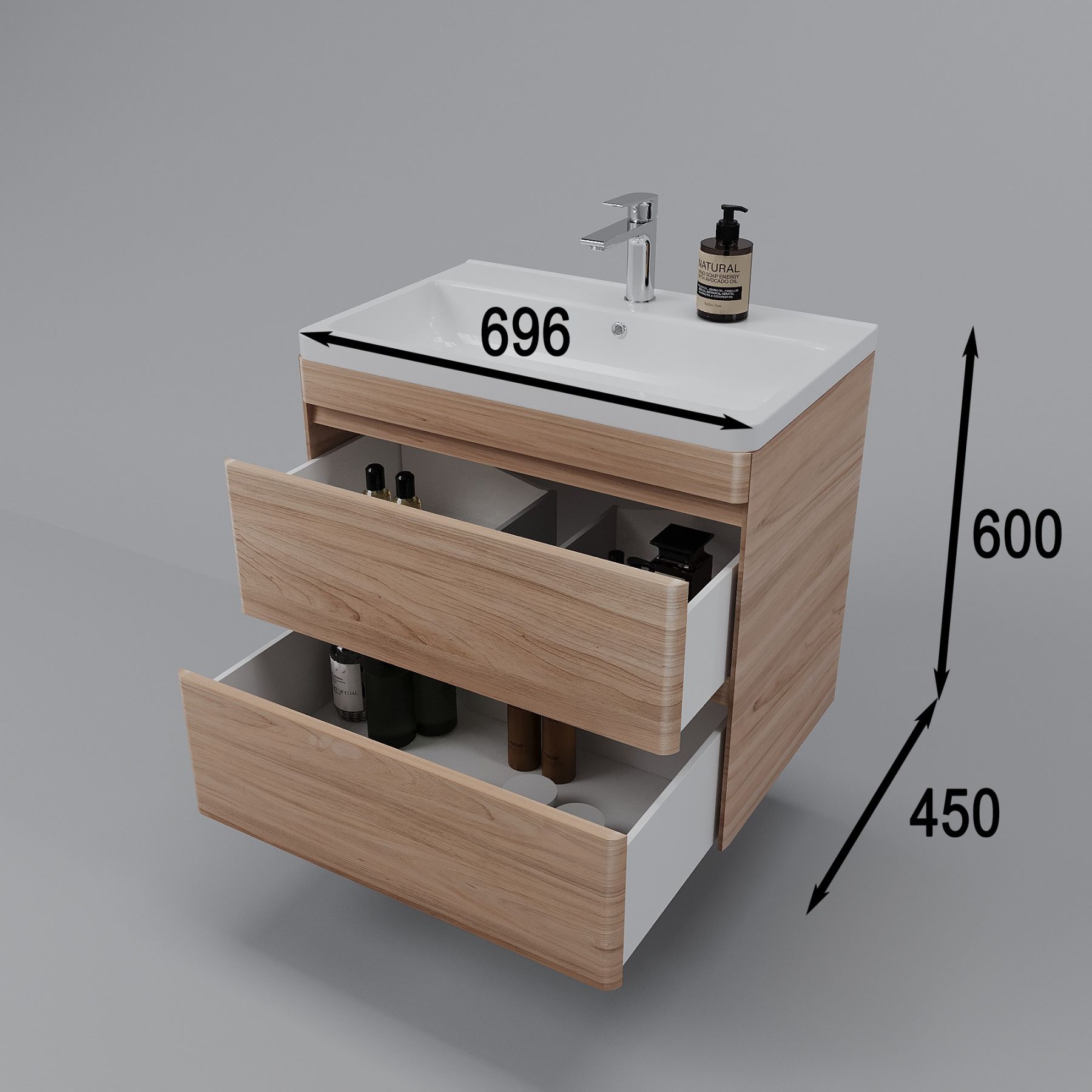 Тумба под раковину Style Line Атлантика 70, СС-00002341, 70 см, подвесная, Люкс Plus, ясень перламутрРаковина приобретается отдельно.