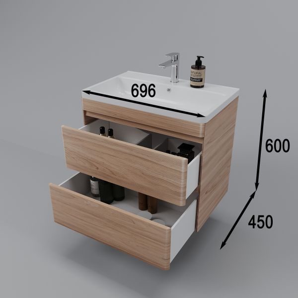 Подвесная тумба под раковину Style Line Атлантика Люкс Plus СС-00002341 70см ясень перламутр