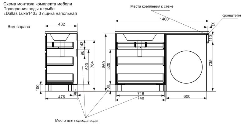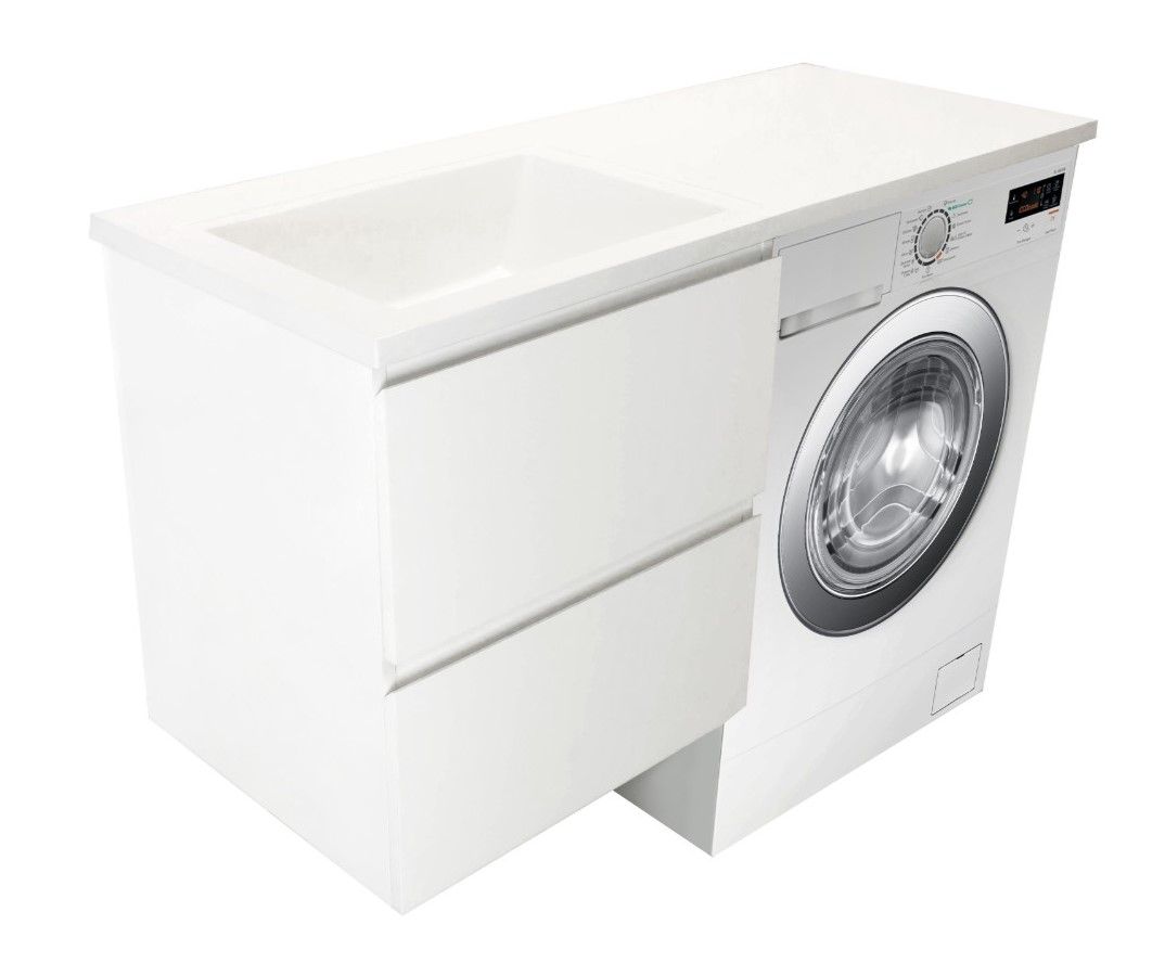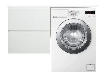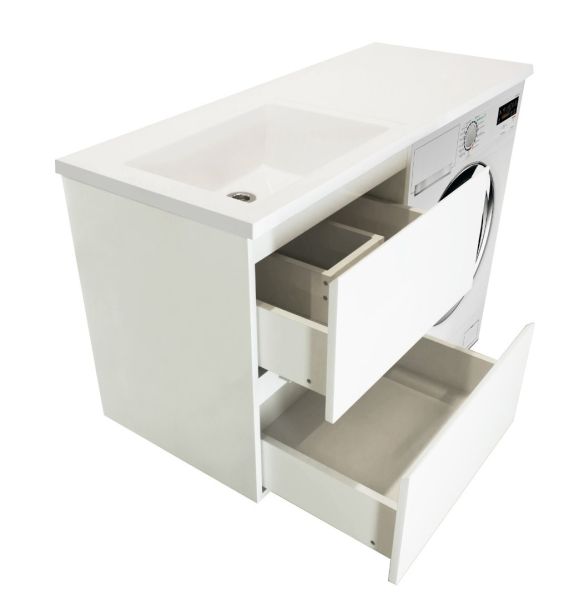 Коллекция мебели для ванной комнаты Dallas Luxe покоряет своей удивительной простой и функциональностью. Современная тумба укомплектована раковиной из литьевого мрамора с удобной чашей. Стиральная машина устанавливается под столешницей, за счет чего экономит место в ванной комнате. В тумбе имеются два ящика. Нижний ящик тумбы – широкий и вместительный – предназначен для крупных предметов, а в верхнем имеется специальная организация пространства, позволяющая хранить мелкие вещи. Подвесная система монтажа позволяет более эффективно использовать пространство, не мешает уборке в ванной комнате.