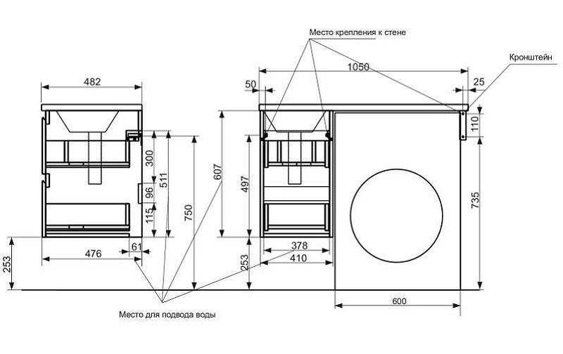 Коллекция мебели для ванной комнаты Dallas Luxe покоряет своей удивительной простой и функциональностью. Стильная лаконичная тумба, укомплектована раковиной из литьевого мрамора с удобной чашей. Стиральная машина устанавливается под столешницей, за счет чего экономит место в ванной комнате. В тумбе имеются два ящика. Нижний ящик тумбы – широкий и вместительный – предназначен для крупных предметов, а в верхнем имеется специальная организация пространства, позволяющая хранить мелкие вещи.