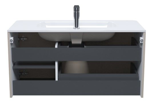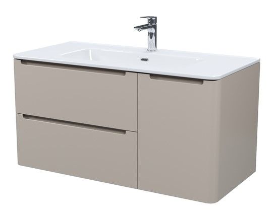 Вместительная подвесная тумба с плоским умывальником Edifice в теплом оттенке капучино – воплощение современного минимализма. Мягкие линии корпуса в сочетании с удобными интегрированными ручками выглядят свежо и актуально. Смотрится аккуратно, легко и не усложняет процесс уборки в ванной благодаря подвесной конструкции.