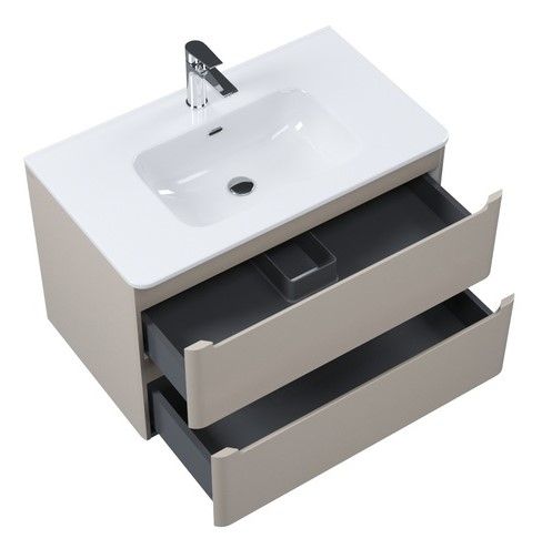 Подвесная тумба с плоским умывальником Edifice в теплом оттенке капучино – воплощение современного минимализма. Мягкие линии корпуса в сочетании с удобными интегрированными ручками выглядят свежо и актуально. Смотрится аккуратно, легко и не усложняет процесс уборки в ванной благодаря подвесной конструкции.