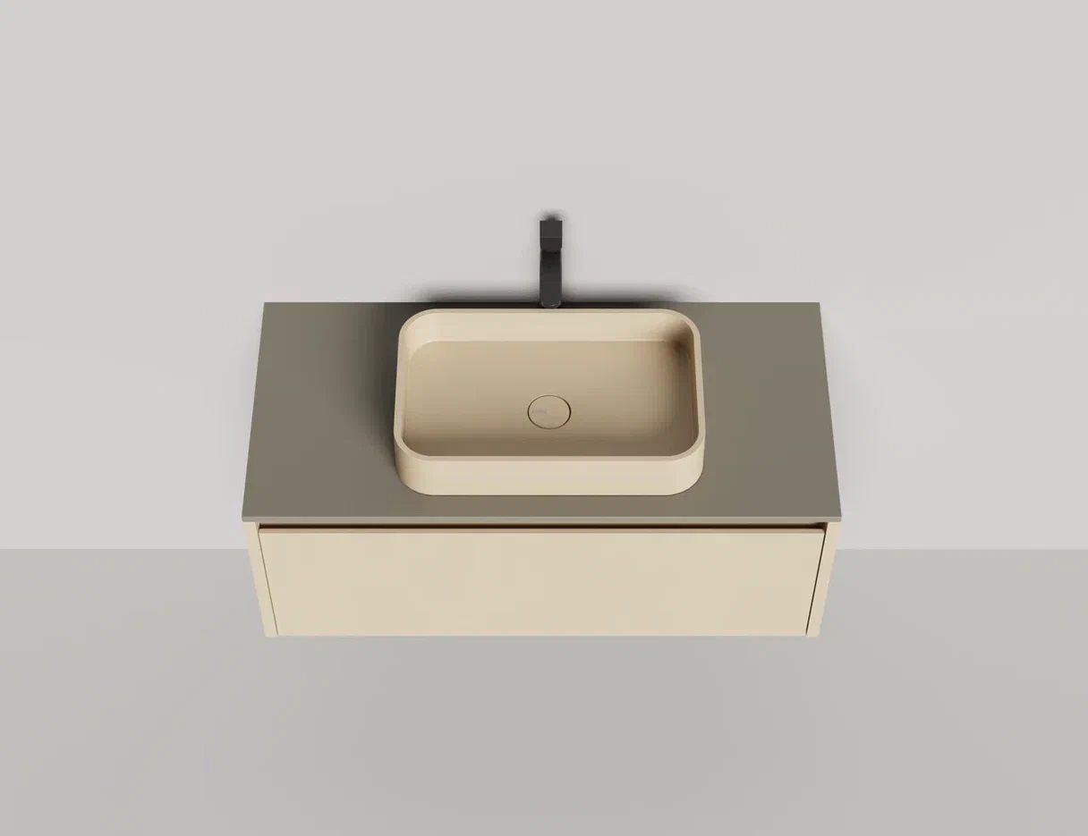 - Тумба и столешница из материала S-Stone в сборе (накладные раковины укомплектованы донным клапаном и поставляются в отдельной коробке)