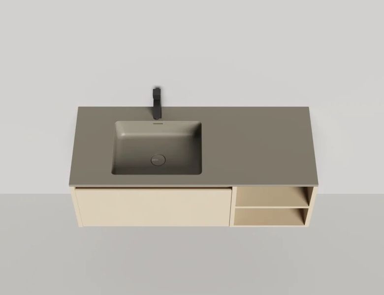 Наполнение для тумбы включает: блоки ячеек для тумб, коврики и комплект внутренней подсветки, которые помогут организовать пространство и создать более удобный доступ к вещам.Тумба DOMINO, дополненная столешницей COSTA из каменного литья S-Stone, гарантирует практичность и простоту ухода.