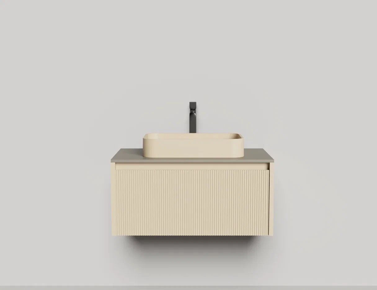 • Тумба и столешница из материала S-Stone в сборе (накладные раковины укомплектованы донным клапаном и поставляются в отдельной коробке)