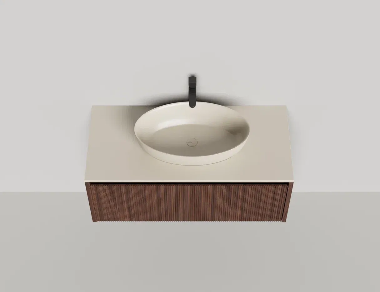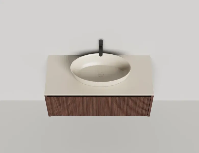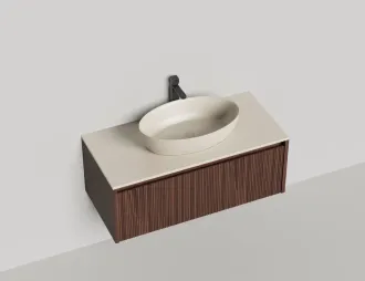• Тумба и столешница из материала S-Stone в сборе (накладные раковины укомплектованы донным клапаном и поставляются в отдельной коробке)