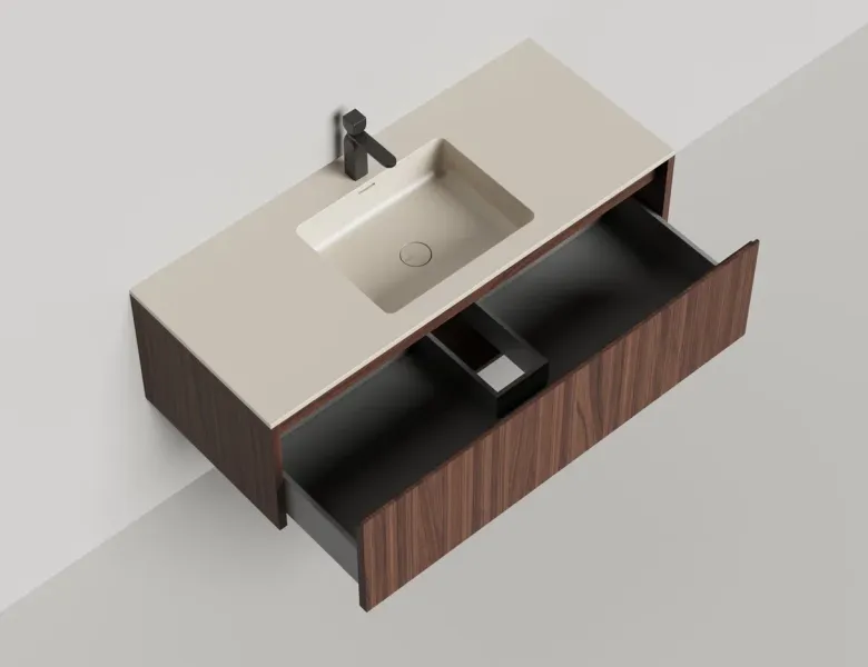 Наполнение для тумбы включает: блоки ячеек для тумб, коврики и комплект внутренней подсветки, которые помогут организовать пространство и создать более удобный доступ к вещам.Тумба DOMINO, дополненная столешницей COSTA из каменного литья S-Stone, гарантирует практичность и простоту ухода.