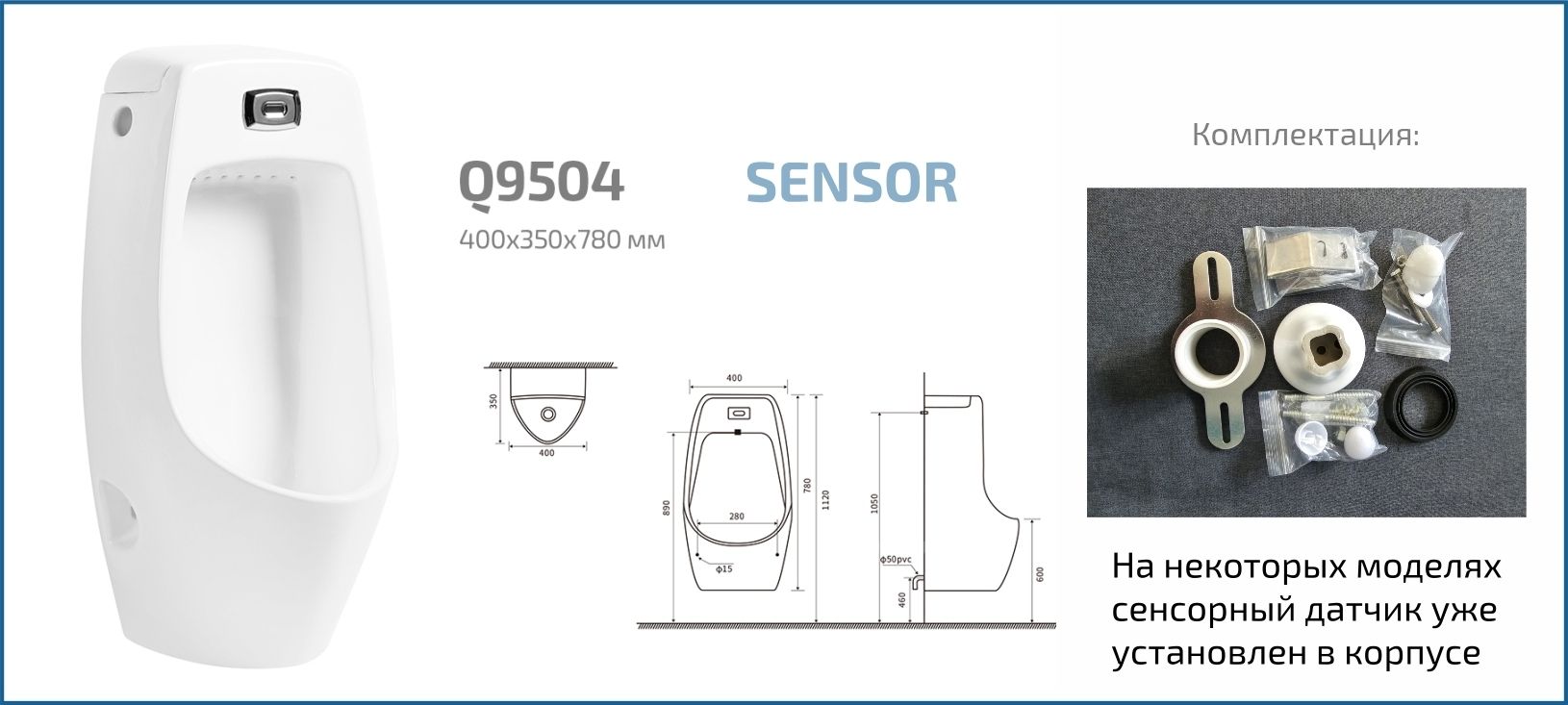 Publico — коллекция писсуаров, выполненная в строгом и лаконичном дизайне. Испанское качество и европейские стандарты соответствуют самым высоким требованиям эксплуатации. Подвесной сенсорный писсуар GiD Q9504 изготовлен из высококачественной керамики с белоснежным глянцевым покрытием, что придает ему современный и элегантный вид. Благодаря бесконтактному управлению устройство обеспечивает гигиеничность и удобство использования, автоматически активируя смыв при обнаружении пользователя. Скрытый подвод воды и настенный монтаж позволяют экономить пространство и облегчают уборку, делая эту модель идеальной для современных ванных комнат и общественных туалетов.