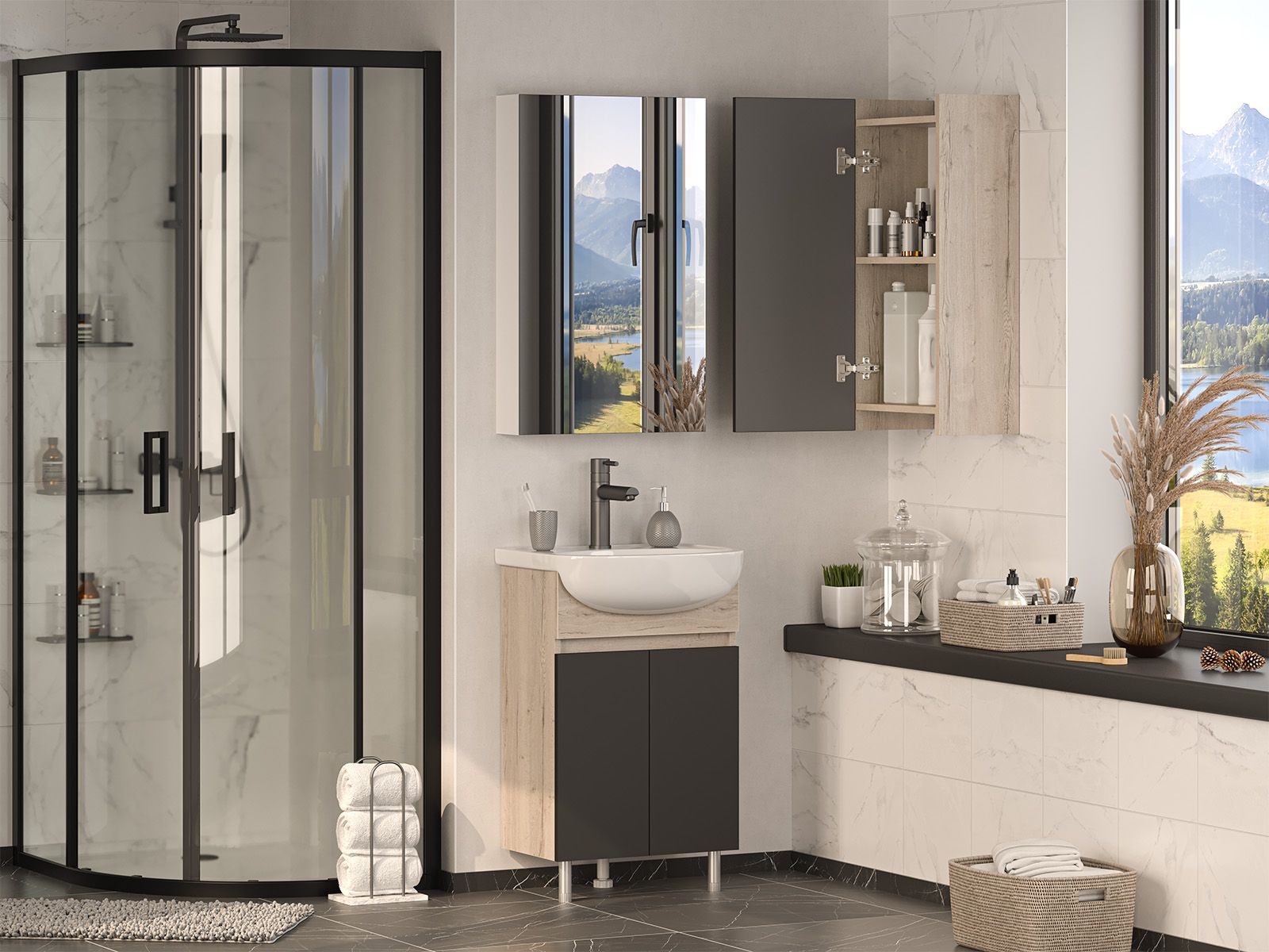Шкаф для ванной комнаты – это стильное решение, которое гармонично вписывается в современный интерьер. Его элегантные линии и аккуратные формы создают атмосферу чистоты и порядка, что особенно важно в таком интимном пространстве. Изготовленный из качественных влагостойких материалов, этот шкаф обеспечивает долговечность и надежность, даже в условиях повышенной влажности.Основное преимущество шкаф заключается в его вместительности. Удобные полки и ящики позволяют организовать пространство и разместить все необходимое: от косметики до бытовых принадлежностей. Каждая деталь продумана для удобства использования, что делает утренние и вечерние ритуалы более приятными.Будь то строгий минимализм или уютный скандинавский стиль, шкаф станет акцентом, который подчеркивает индивидуальность вашего пространства. Не упустите возможность преобразить свою ванную комнату, добавив в нее этот элегантный и практичный элемент.
