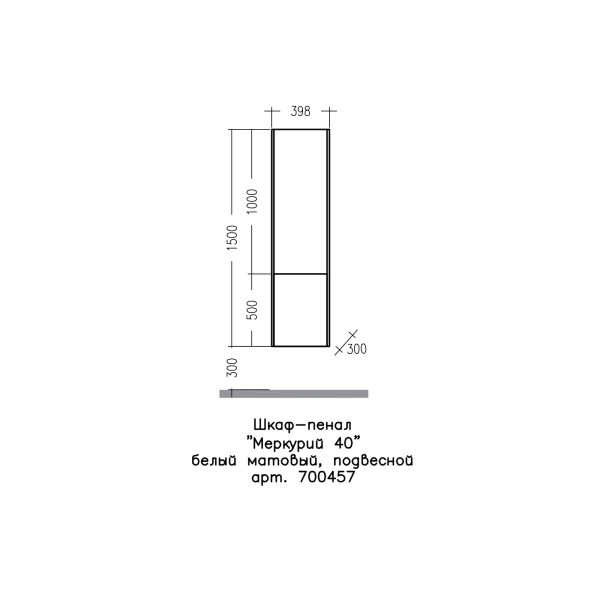 Шкаф-пенал подвесной Меркурий 40. Фасады пенала выполнены из ЛДСП с ламинацией, боковины покрыты матовой белой эмалью.  На дверках петли с плавным закрыванием, полочки выполнены из стекла.