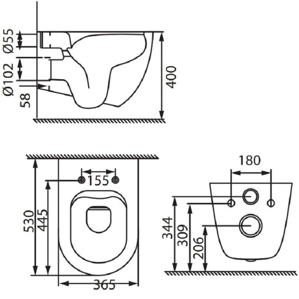 • Укороченный унитаз: