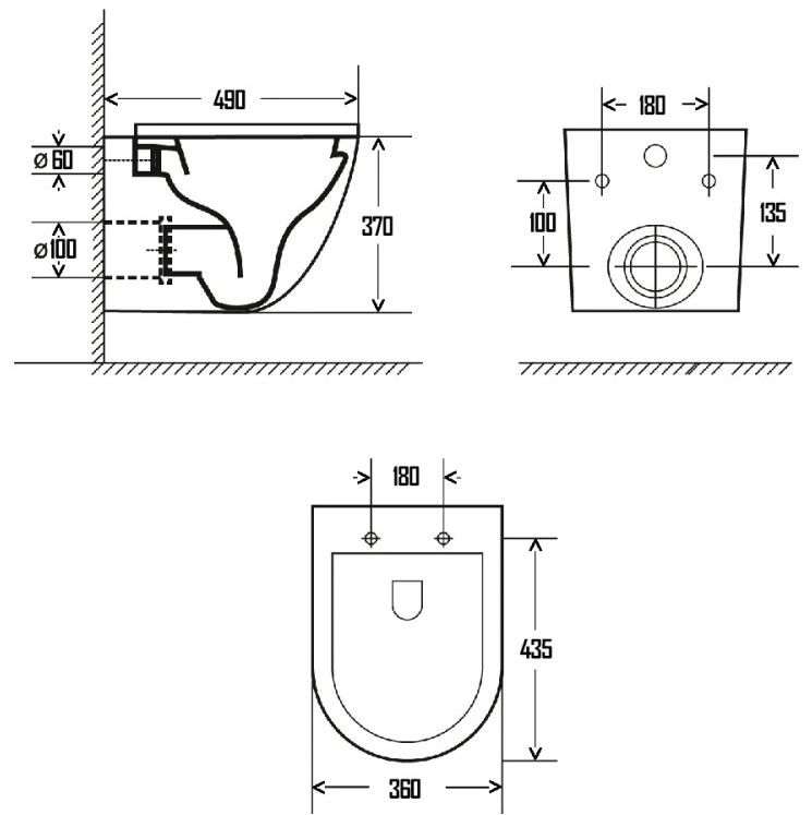 • Прилегание унитаза к стене: