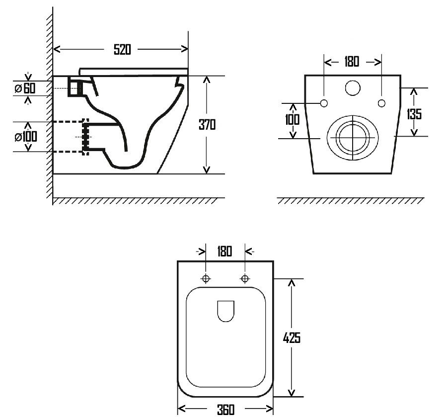 • Прилегание унитаза к стене: