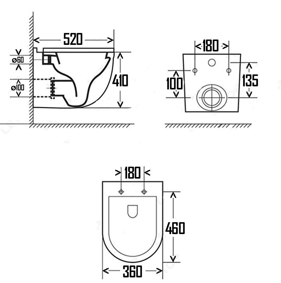 • Прилегание унитаза к стене: