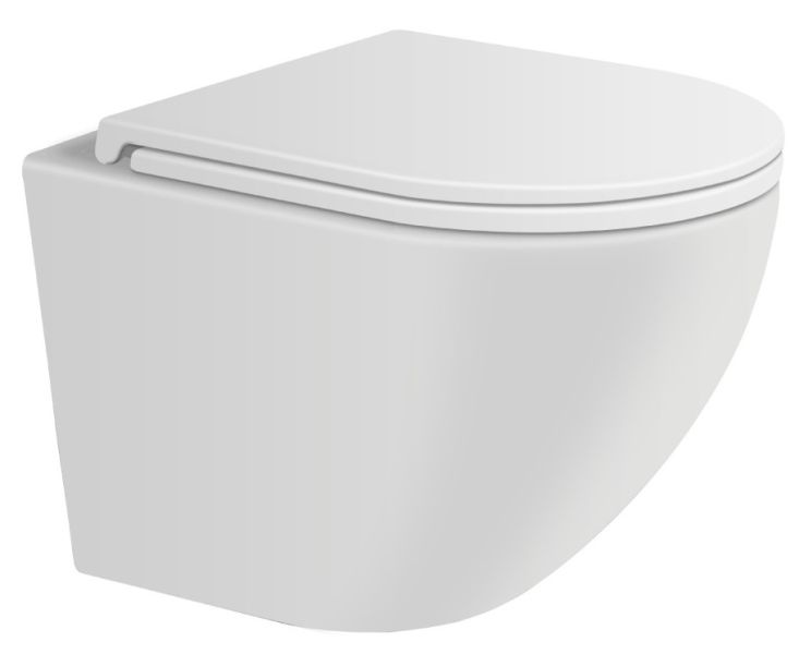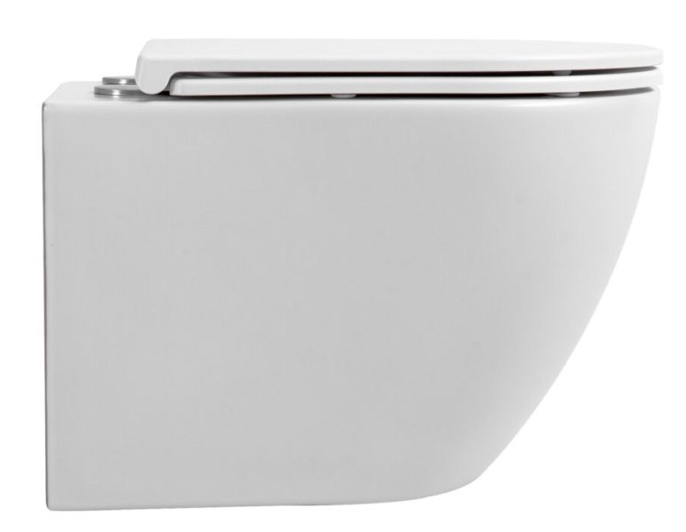 Подвесной безободковый унитаз с системой скрытого монтажа, крышкой-сидением из дюропласта с функцией soft-close и quick release.