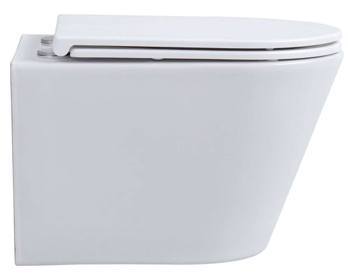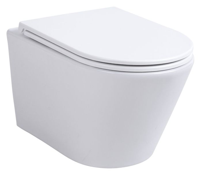 Подвесной безободковый унитаз с системой скрытого монтажа, крышкой-сидением из дюропласта с функцией soft-close и quick release.