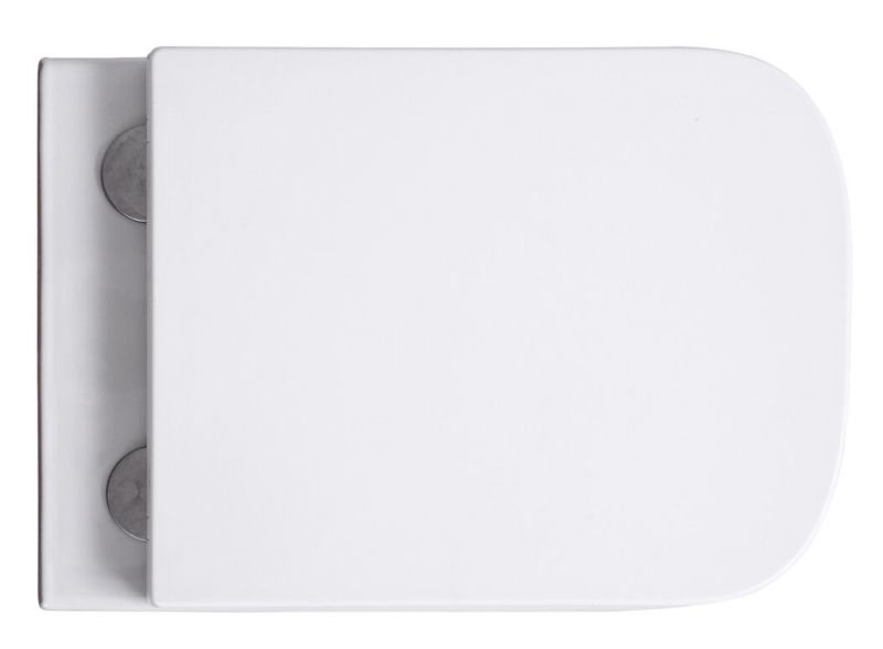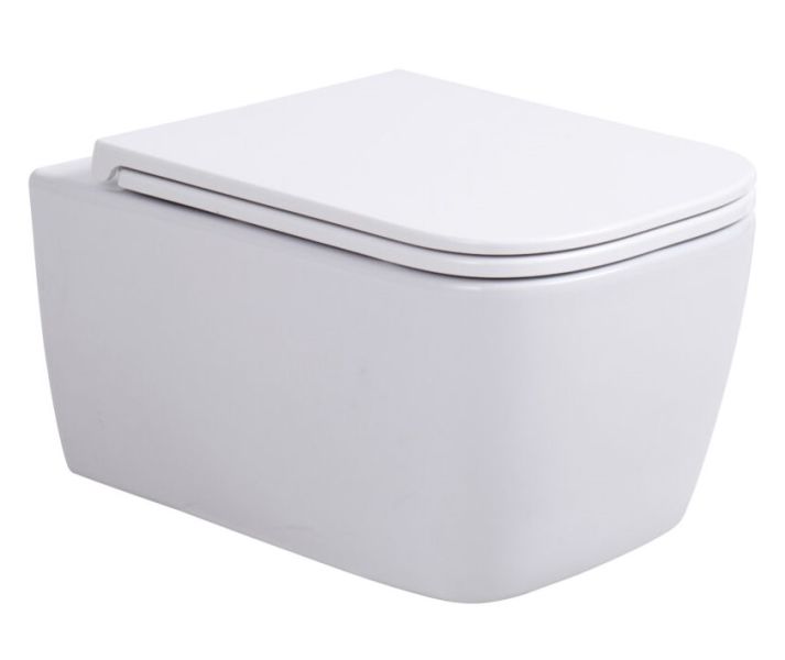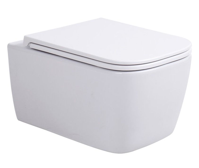 Подвесной безободковый унитаз с системой скрытого монтажа, крышкой-сидением из дюропласта с функцией soft-close и quick release.