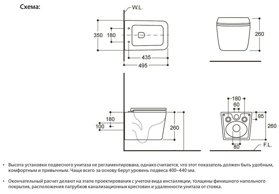Режим смыва воды:определяется системой инсталляции