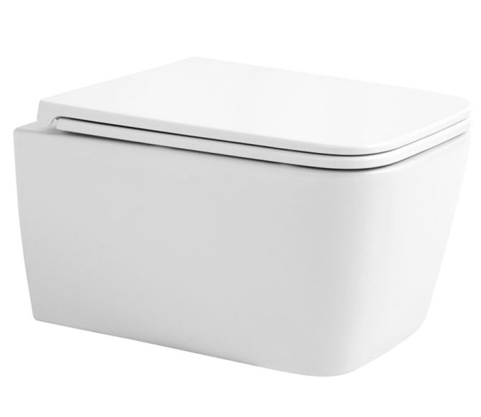 Подвесной безободковый унитаз с системой скрытого монтажа, крышкой-сидением из дюропласта с функцией soft-close и quick release.