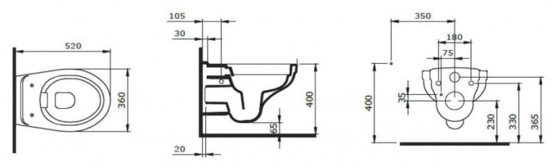 • Прилегание унитаза к стене: