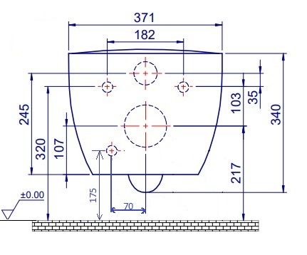 • Прилегание унитаза к стене: