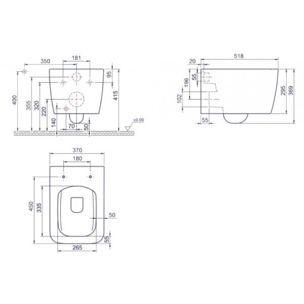 Унитаз подвесной Boheme Zen 967-WM превосходно подойдет не только для того что бы освежить былой интерьер, но и подойдет для основы будущего дизайна. Очень важное преимущество подвесных унитазов это легкость при уборке в санузле и мытье самого унитаза.Прямоугольная форма унитаза Boheme Zen длиной 51.8 см, шириной 37 см, высотой 36.9 см, позволяет гармонично установить унитаз. Boheme Zen 967-WM выполнен в современном стиле, что позволит создать уютную атмосферу данного направления дизайна. Безободковая конструкция чаши Zen 967-WM не только препятствует появлению бактерий и вредного запаха, но и упростит процесс мытья унитаза. Горизонтальный (в стену) выпуск унитаза Boheme Zen 967-WM обеспечит отличную проходимость, но этот параметр обязательно нужно учесть при монтаже. Материал унитаза 967-WM фарфор отличается высокой гигиеничностью, надежностью и выполнен с соблюдением стандартов качества.Родина марки Boheme – Италия, все унитазы производятся с абсолютным соблюдением стандартов качества. Унитаз подвесной Boheme Zen 967-WM глянец белый необходимый элемент любого санузла, который составляет основу всей сантехники.