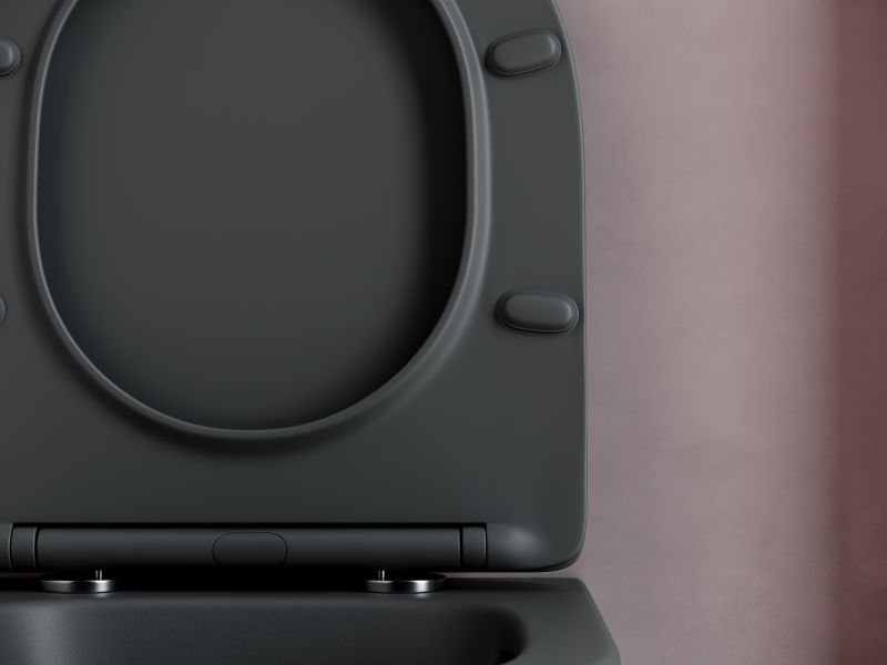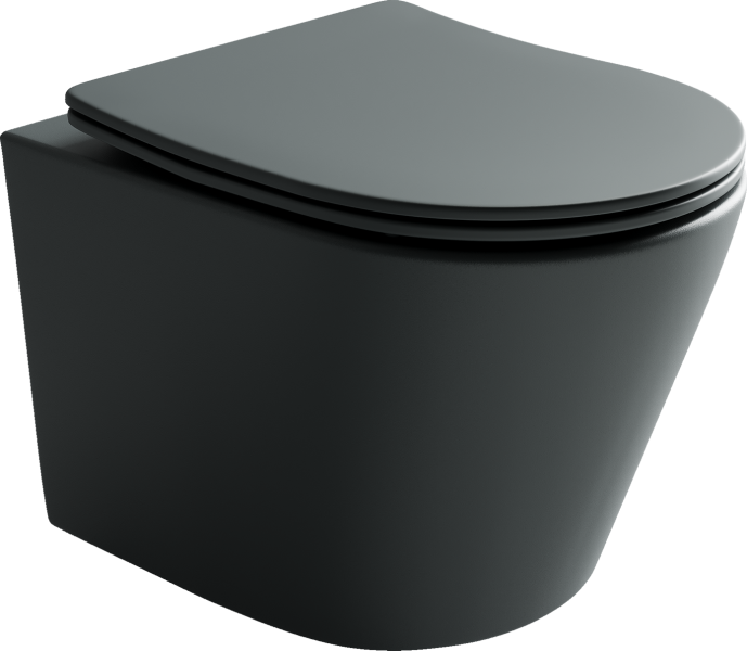 Подвесной унитаз Balearica Rimless (цвет Темный Антрацит Матовый), глубокий смыв, с крепежом для полностью скрытого монтажа, ультра тонким с сидением и крышкой с функцией плавного закрытия, дюропласт