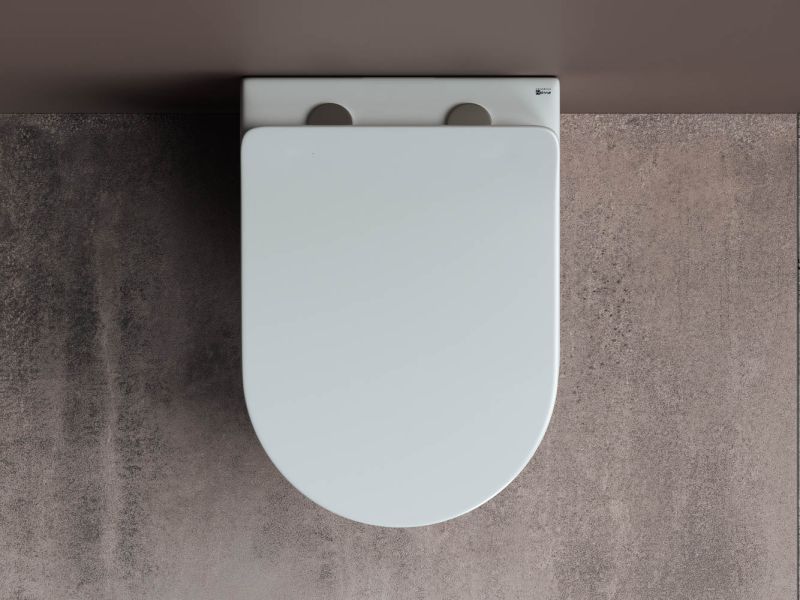 Подвесной унитаз Mia Rimless, глубокий смыв, с крепежом для полностью скрытого монтажа, ультра тонким сидением с функцией плавного закрытия