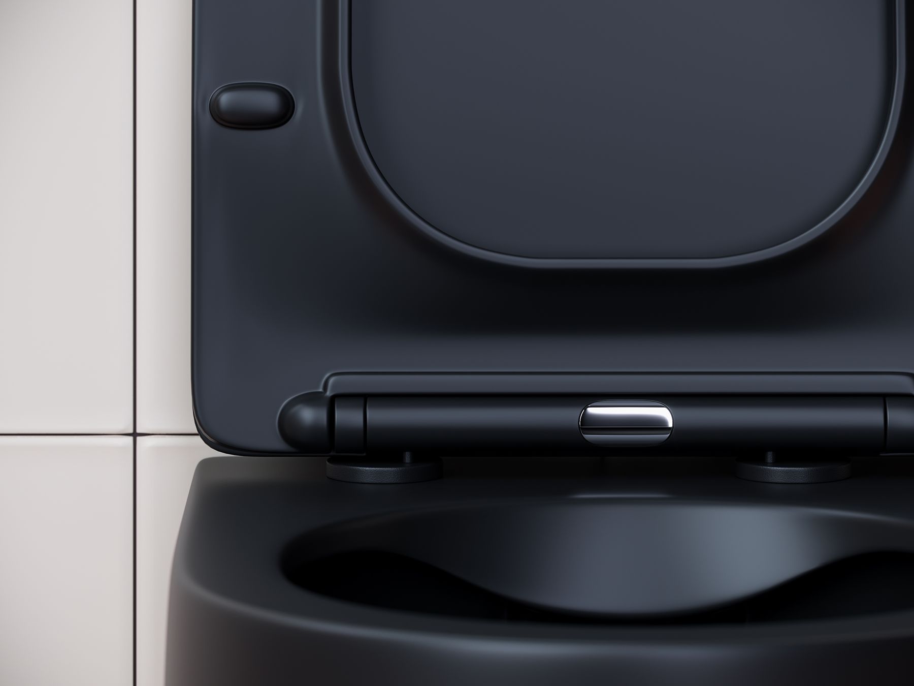 Подвесной унитаз Play Rimless, глубокий смыв, с крепежом для полностью скрытого монтажа, ультра тонким с сидением и крышкой с функцией плавного закрытия, дюропласт, черный матовый
