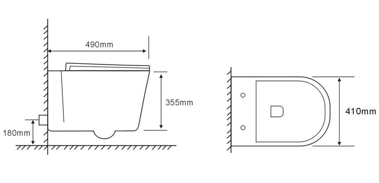 • Прилегание унитаза к стене: