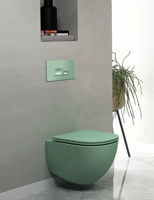 Подвесной унитаз Isvea Infinity 10NF02001SV-2T безободковый крышка микролифт мятно-зелёный матовый