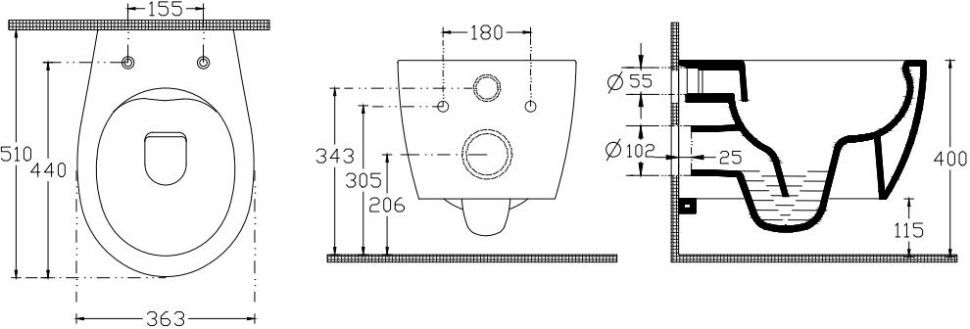• Укороченный унитаз: