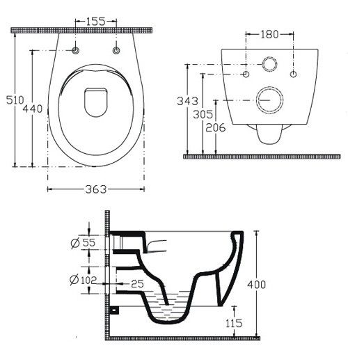 Режим смыва воды:определяется системой инсталляции