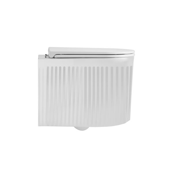 Комплектация унитаз настенный керамический безободковый; сиденье для унитаза из дюропласта ультратонкая легкосъемная с функцией плавного закрывания; инструкция/гарантийный талон