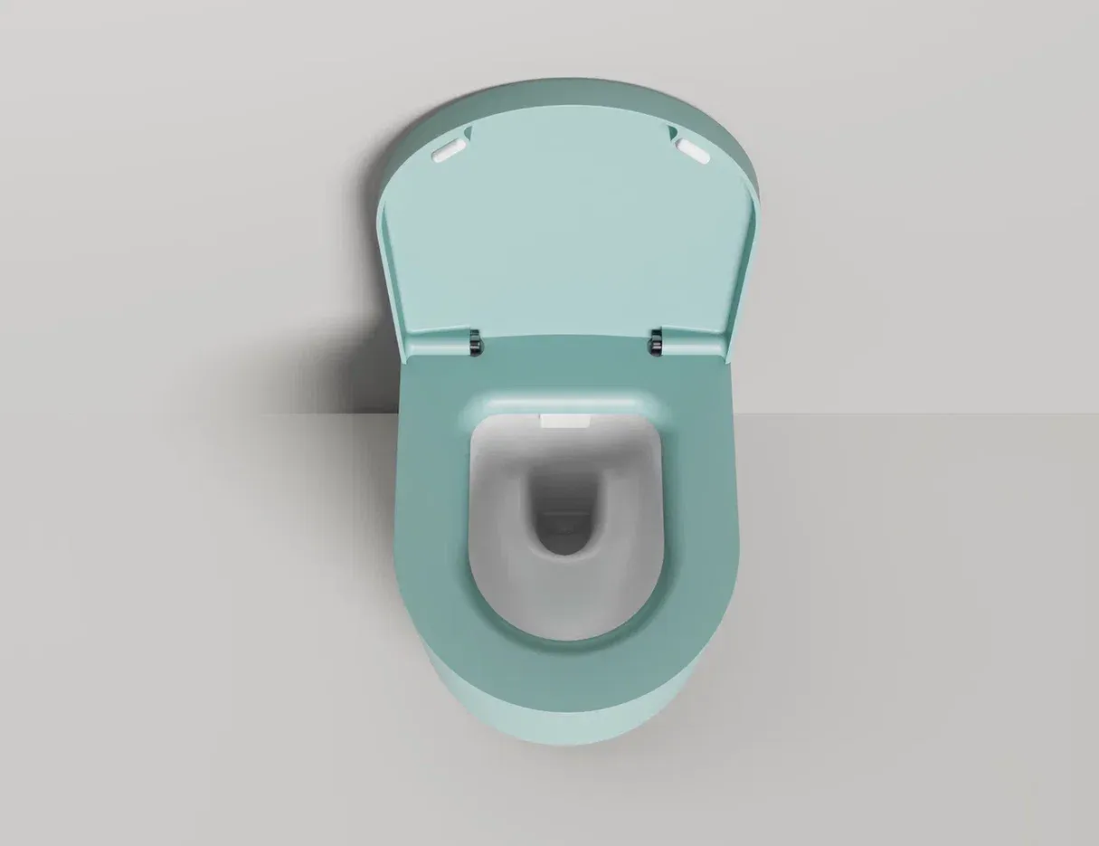 Унитаз GEMELLI — это комбинация безободковой керамической основы белого цвета (VitrA) и внешнего корпуса, изготавливаемого из материала S-Stone, который может быть окрашен по палитре RAL Classic.