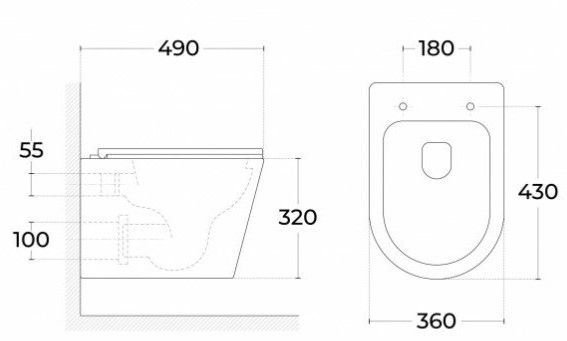 • Прилегание унитаза к стене:
