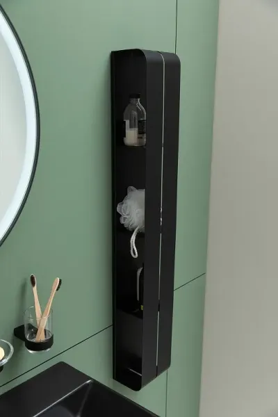 Полка Aquanet Магнум H 15x130 черная матовая, вертикальная - идеальное решение для хранения вещей и аксессуаров в ванной комнате. Она состоит из трех полочек и вертикального каркаса без острых краев и углов. Легкий монтаж полочки для ванной обусловлен идущей в комплекте схемы для точной разметки. Материал настенной полки - нержавеющая сталь толщиной 1,5 мм. Благодаря скрытым креплениям и материалу, полку можно размещать даже в мокрых зонах ванной комнаты без опасений за ее прочность и сохранность.