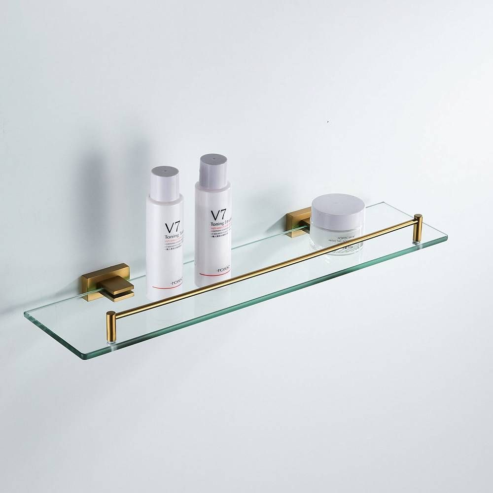 Полка стеклянная Shevanik SG5619G, золотой сатин.Глубина: 13,5 см.Ширина: 50 см.